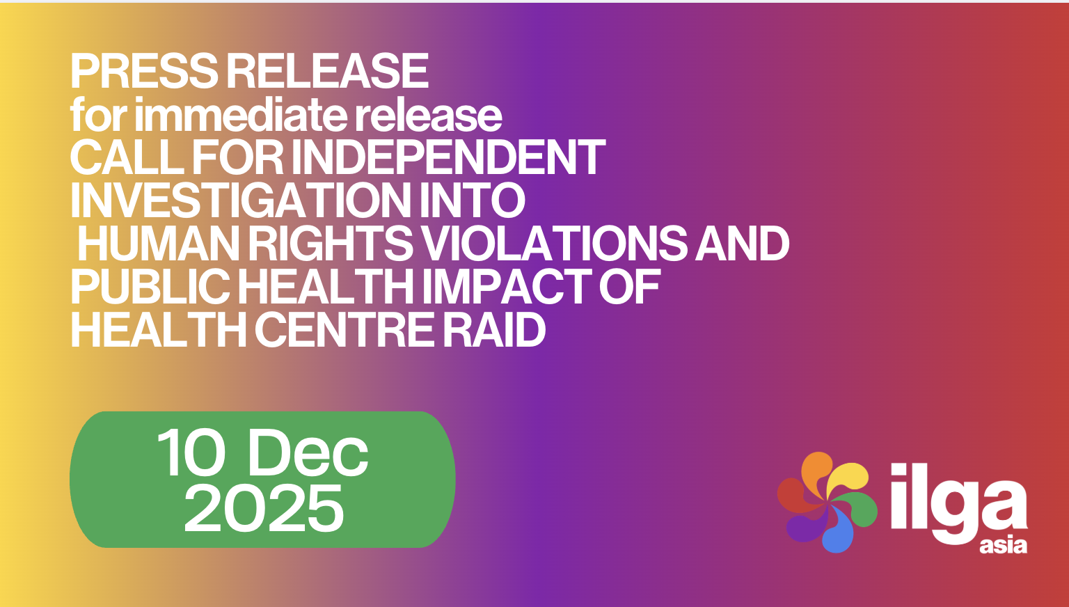 We call on the Human Rights Commission of Malaysia (SUHAKAM) and the Ministry of Health (MOH) to launch an immediate, independent, and impartial assessment and investigation into the conduct of the relevant agencies throughout the raid, arrest, processing, and the prolonged detention after the magistrate denied the remand extension on the evening of November 29, 2025.